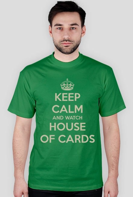 Oryginalna męska koszulka z nadrukowanym napisem ,,KEEP CALM AND WATCH HOUSE OF CARDS''. Produkt został stworzony dla fanów serialu ,,HOUSE OF CARDS''. Doskonale nadaje się na prezent dla fanów serii !!!