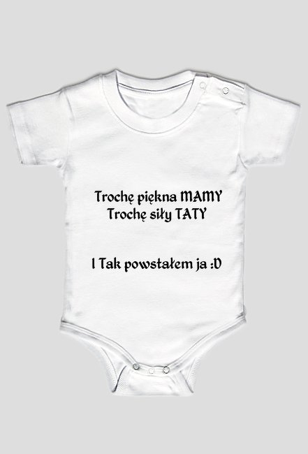 Absolutnie niezbędne w szafie każdego bobasa: body z super nadrukiem. Jeśli masz super-dziecko, które samodzielnie wybierze grafikę, to fantastycznie, jeśli nie, obowiązek niestety spada na Ciebie, rodzicu. Nasze body niemowlęce z krótkim rękawem, dostępne jest w klasycznych dziecięcych kolorach. Dzięki praktycznym detalom ubieranie i rozbieranie małego bąbla staje się dziecinnie proste.