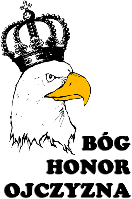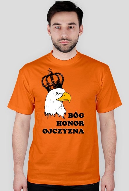 Koszulka promująca trzy najważniejsze wartości każdego Polaka: Bóg, Honor, Ojczyzna! Głowa orła w zamkniętej koronie symbolizuje suwerenność i dumę.