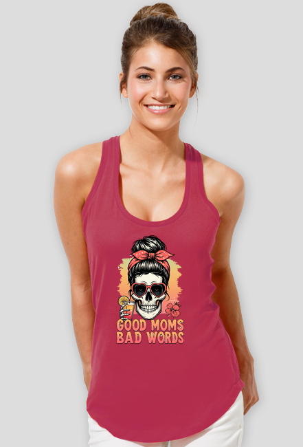 Czaszkowa mama z drinkiem: Dobre mamy mówią złe słowa. SKU: koszulka-bokserka-damska_adhb76yu_4800359
