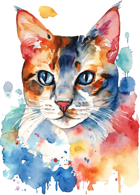 Zanurz się w urzekającym spojrzeniu kota, którego twarz jest płótnem akwarelowych cudów. Każde pociągnięcie jest płynnym tańcem kolorów, odzwierciedlającym żywego ducha i enigmatyczny urok naszych kocich towarzyszy. To dzieło zaprasza do odkrywania emocjonalnej głębi i mistycznej więzi, jaką dzielimy z tymi wdzięcznymi stworzeniami