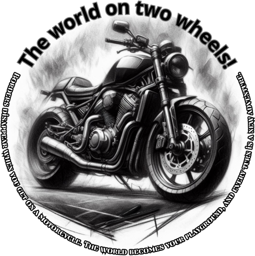 "Świat na dwóch kołach! To zdanie oddaje istotę wolności i przygody związanej z jazdą na motocyklu. Poniższy obraz przedstawia potężny, starannie wykonany motocykl, symbolizujący ucieczkę kierowcy od przyziemności i wejście w świat niekończących się horyzontów i niewykorzystanych możliwości. Każdy zakręt, każda droga staje się odkryciem; granice znikają, gdy harmonizujemy z rytmicznym buczeniem silnika i wiatrem na skórze. Nie chodzi tylko o transport; chodzi o przekroczenie zwykłej egzystencji, doświadczanie każdej chwili z wyostrzonymi zmysłami, gdzie każda podróż jest opowieścią o eksploracji.   Obraz jest czarno-białym rysunkiem ołówkiem, przedstawiającym szczegółowy motocykl. Motocykl wydaje się mocny i dobrze zbudowany, z widocznymi szczegółami na silniku, kołach i nadwoziu. Za motocyklem znajduje się artystyczne przedstawienie ruchu lub energii, zilustrowane przez wirujące linie lub dym. Nad tym wszystkim widnieje napis "Świat na dwóch kołach!" wskazujący na wolność związaną z jazdą na motocyklu. Poniżej znajdują się słowa: "Granice znikają, gdy wskakujesz na motocykl. Świat staje się Twoim placem zabaw za każdym zakrętem, a nowa przygoda czeka."