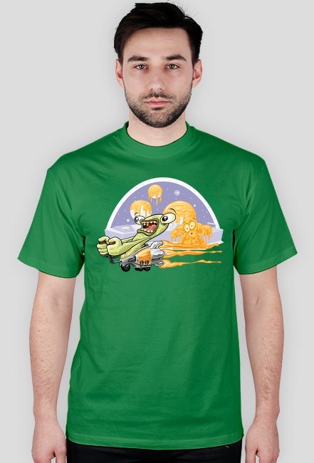 Model ma na sobie koszulkę w rozmiarze M. Maksymalne wymiary nadruku to 30cm (szerokość)