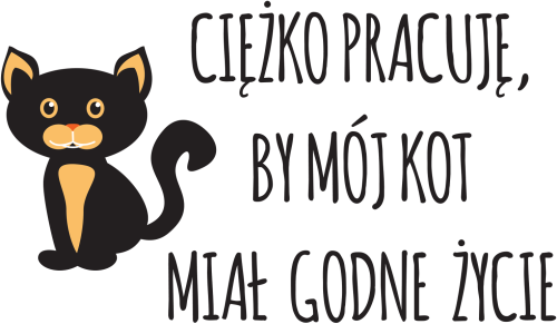 Ciężko pracuję, by mój kot miał godne życie – koszulka dla prawdziwych miłośniczek (i miłośników) kotów. Też ciężko pracujesz, by Twój kot miał godne życie – jeśli tak, to ta koszulka z pewnością jest dla Ciebie! ;–)