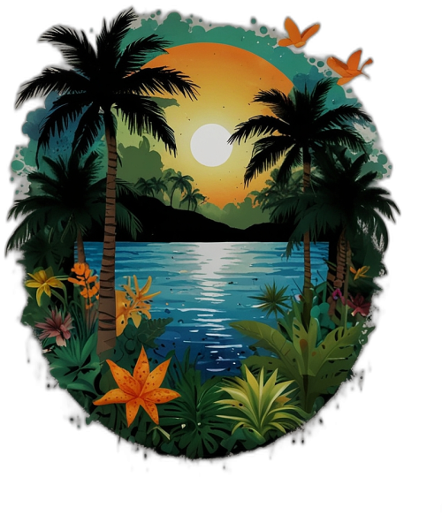 Koszulka z motywem zachodzącego słońca to wyraz harmonii z naturą i spokoju, który przenosi Cię w świat wieczornego uroku tropikalnych plaż. Na przedzie koszulki widać pejzaż z palmami, które majestatycznie wyłaniają się zza delikatnych fal oceanu, a w tle rozciąga się niebo płonące odcieniami zachodzącego słońca. Ta koszulka to zaproszenie do podróży w głąb tropikalnego raju, gdzie czas wydaje się zatrzymać, a każdy moment jest pełen magii. Poczujesz na sobie ciepłe promienie zachodzącego słońca, usłyszysz szum fal i poczujesz delikatny zapach soli morskiej. Niech ta koszulka stanie się Twoim przewodnikiem w podróży przez piękno przyrody i niezapomnianych chwil spędzonych na plaży w otoczeniu palm i błękitnego oceanu.