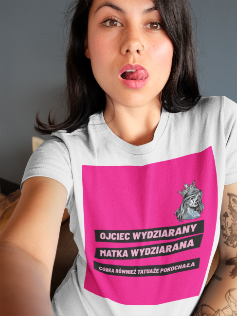 Koszulka "Ojciec wydziarany, matka wydziarana córka również tatuaże pokochała" SKU: koszulka-damska-K02_6qi02ypx_4324015