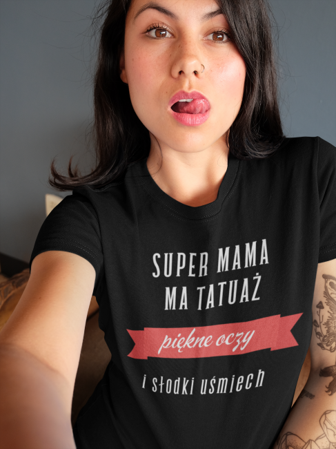 Koszulka "Super mama, ma tatuaż, piękne oczy i słodki uśmiech"