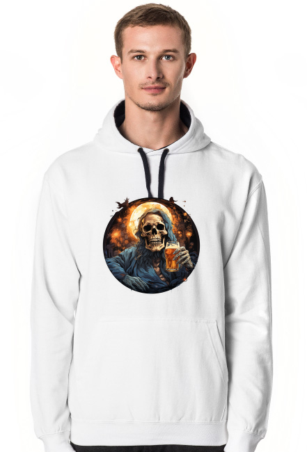 Witaj, drogi miłośniku stylowego streetwearu! Masz ochotę wyróżnić się z tłumu i wyrazić swój niecodzienny gust? Ta bluza męska z kapturem z grafiką kościotrupa pijącego piwo jest właśnie dla Ciebie!