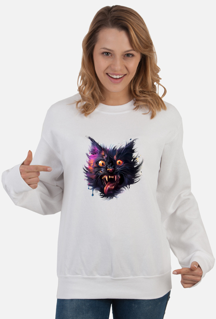 Czy szukasz bluzy, która wyróżni Cię z tłumu? Ta wystrasowana szalona kotka na pewno przyciągnie uwagę wszystkich dookoła! Bluza damska z unikatowym printem to must-have tego sezonu - idealna zarówno na spacer po parku, jak i na kocie wieczorki ze znajomymi.