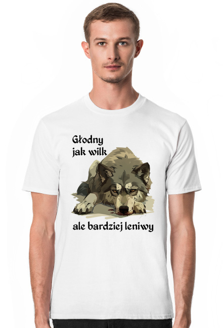 Czy kiedykolwiek zastanawiałeś się, jak wyglądałby wilk, który jest tak leniwy, że lenistwo góruje nad głodem? Ta koszulka męska przedstawia wilka znudzonego do granic możliwości, bardziej skupionego na lenistwie niż na jedzeniu.Jeśli uważasz, że twoje podejście do życia czasami przypomina postawę tego leniwego zwierzaka, ta koszulka jest dla ciebie! Daj świadectwo swojemu własnego lenistwu i poczuciu humoru, nosząc tę wyjątkową koszulkę. Nie czekaj dłużej i dodaj trochę luzu do swojej garderoby dzięki tej zabawnej koszulce! Pamiętaj, że lenistwo to sztuka, więc już teraz zamów swoją koszulkę ze zdjęciem głodnego, leniwego wilka!