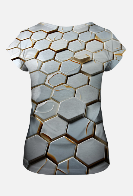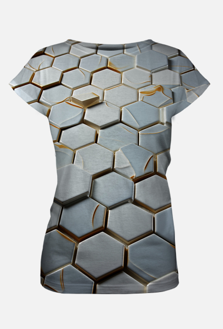 Ta koszulka to absolutny hit wśród miłośniczek geometrycznych wzorów! Wykonana z wysokiej jakości materiału, który jest równie wygodny, co stylowy. Grafika złożona z sześciokątnych kafelków sprawia, że ta koszulka wyróżnia się na tle innych i przyciąga spojrzenia. Idealna do noszenia na co dzień lub na specjalne okazje, będzie doskonałym uzupełnieniem Twojej garderoby. Każda kobieta powinna mieć taką koszulkę w swojej szafie - dlatego nie czekaj i zamów ją już teraz! Jesteśmy pewni, że pokochasz ją od pierwszego założenia.