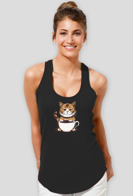 Czy lubisz koty? A może jesteś miłośniczką kawy? Jeśli tak, to ta koszulka została stworzona właśnie dla Ciebie! Na niej znajdziesz uroczego kota trzymającego w łapie filiżankę pełną aromatycznej kawy. Nie ma lepszego połączenia niż słodki mruczący przyjaciel i ulubione napoje!