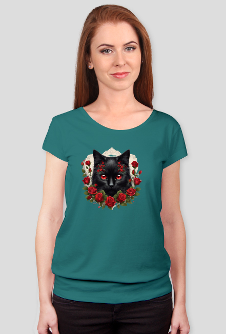 Czy kochasz koty tak bardzo, że chciałabyś nosić je zawsze przy sobie? Ta koszulka jest dla Ciebie! Nasz uroczy kot otoczony różami sprawia, że ta koszulka jest idealna dla miłośniczek zwierząt i kwiatów. Dodatkowo, nie musisz się martwić o alergie, które często towarzyszą posiadaniu prawdziwych kotów! Wybierz tę koszulkę i dodaj trochę uroku swojej garderobie. Bądź oryginalna, bądź wyjątkowa - ta koszulka Ci w tym pomoże! Kup już teraz!