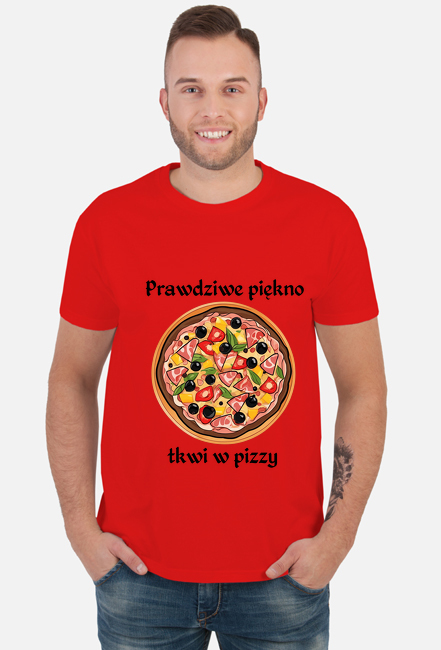 Witaj na pokładzie pizzy-express! Chcesz wyrazić swoją miłość do najwspanialszego wynalazku kulinarnego wszech czasów? Ta koszulka jest dla Ciebie! Niezależnie od tego, czy preferujesz klasyczną Margheritę, pełną sera Quattro Formaggi czy peperoni w każdej postaci - ta koszulka jest stworzona dla prawdziwych fanów pizzy. Wyraź swoje uwielbienie do tego włoskiego dzieła sztuki kulinarnej i spraw, żeby świat wiedział, że dla Ciebie pizza to nie tylko posiłek, to filozofia życia! Dzięki tej koszulce będziesz mógł dumnie prezentować swoje priorytety i przyciągniesz uwagę innych miłośników pizzy. Wybierz swój ulubiony kawałek i zamów już dziś! Bo prawdziwe piękno tkwi w prostocie - i najlepiej w kształcie koła z chrupiącą skórką!