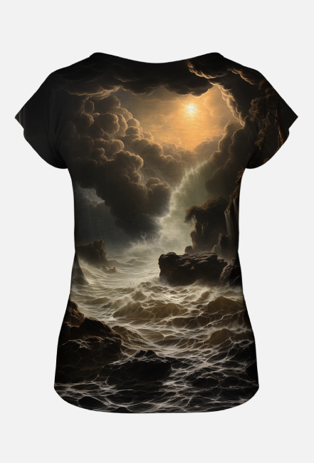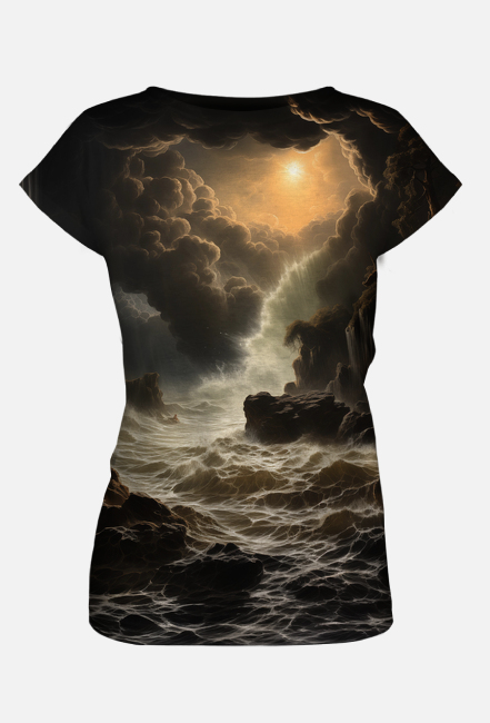 Ta koszulka to jak podróż do magicznego świata wody i skał, gdzie wodospad przechodzi płynnie w rwącą rzekę o zmroku. Grafika na koszulce przenosi Cię w niezwykłą podróż pośród natury, gdzie można poczuć siłę i piękno przepływającej wody. Jeśli chcesz poczuć się jak bohaterka bajki, która odkrywa tajemnicze zakątki natury, ta koszulka jest dla Ciebie! Nie wahaj się i zanurz się w wyjątkowym doświadczeniu noszenia tej koszulki - poczuj magię wody i skał na swojej skórze!