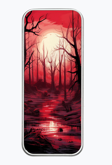 Zapewnij sobie inspirujący i magiczny klimat podczas pisania dzięki naszemu piórnikowi z grafiką lasu o zachodzie słońca! Ta niezwykła sceneria postapokaliptycznego krajobrazu z drzewami bez liści na tle czerwonego nieba sprawi, że każde Twoje pisanie stanie się prawdziwą przygodą.