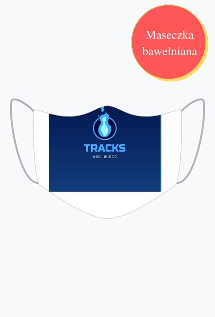 Maseczka z logo kanału na YouTube i Soundcloud.