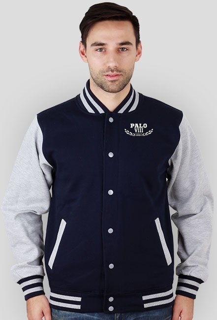 Bluza varsity jacket inspirowana amerykańskim stylem studenckim to opcja dla każdego, kto ceni sobie połączenie funkcjonalności z oryginalnym designem. Materiał, z którego została wykonana to wysokiej jakości bawełna, która ma przewiewną strukturę i daje uczucie miękkości i wygody. Posiada kontrastowe paski na ściągaczach u dołu bluzy i rękawów. Bluza jest zapinana na zatrzaski w kontrastowym kolorze.