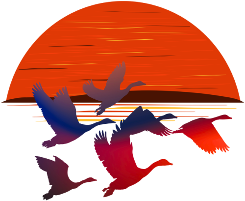 Bluza damska z grafiką dzikich gęsi na tle zachodzącego słońca. Idealna dla każdego, kto lubi unikatowe wzory i chce wyróżnić się z tłumu niepowtarzalną grafiką.