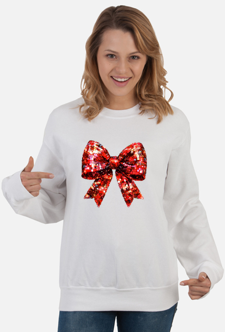 Bluza damska z grafiką czerwonej kokardy. Efekt cekinów. Doskonały pomysł na prezent.