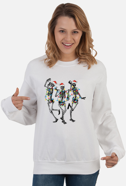 Bluza damska z tańczącymi szkieletami w czapce Mikołaja. Doskonały pomysł na prezent.