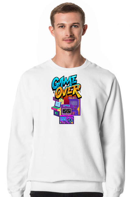 Bluza męska z kolorową grafiką Game Over. Idealna dla fanów gier komputerowych.