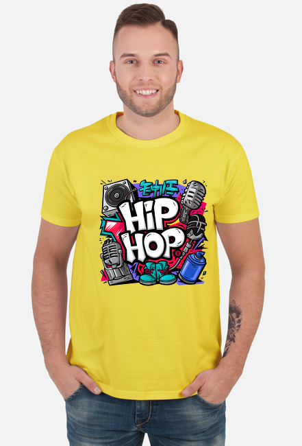 Koszulka męska z muzycznym motywem w stylu hip hop.