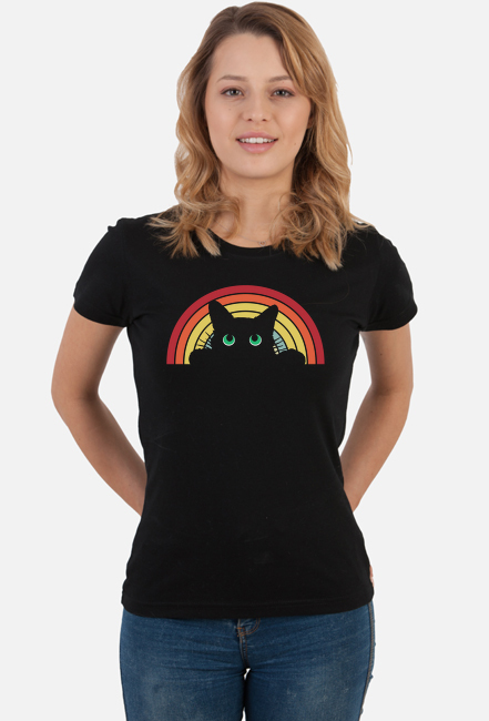 Koszulka damska z uroczą grafiką kota. Styl vintage. Idealna na prezent.