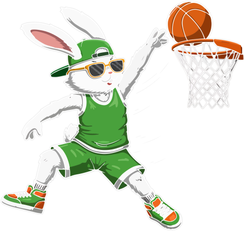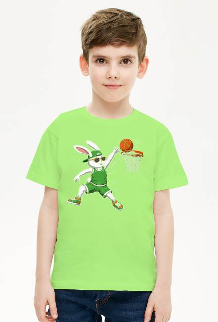 Koszulka dziecięca z zabawną grafiką królika grającego w koszykówkę. Doskonały pomysł na prezent.