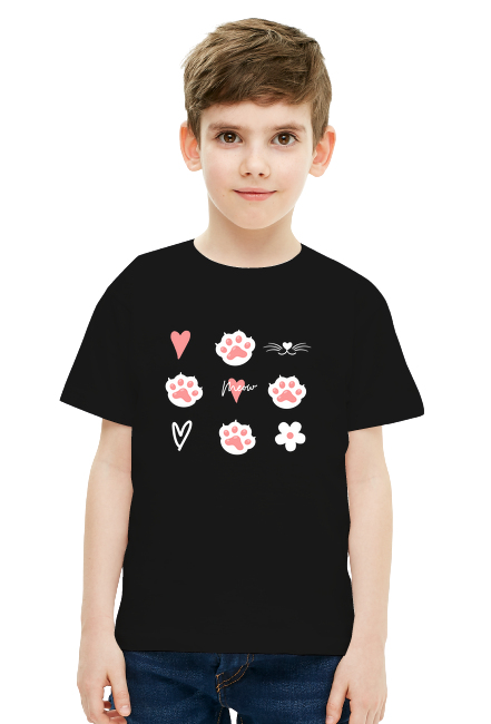 Koszulka dziecięca z uroczą grafiką śladów kota. Idealna na prezent