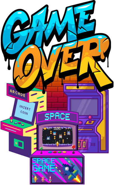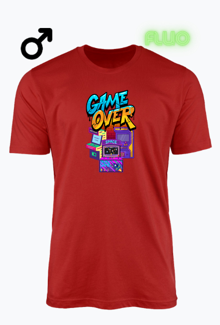 Koszulka męska z kolorową grafiką Game Over. Idealna dla fanów gier komputerowych.