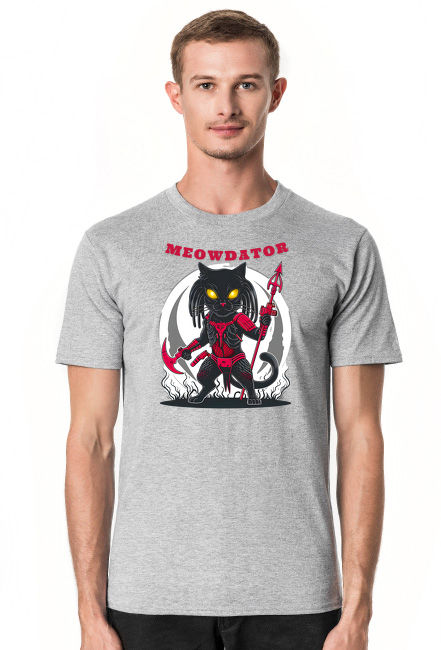 Koszulka męska z zabawnym motywem kota w roli słynnego Predatora.