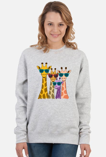 żyrafa, zwierzęta, okulary, śmieszne, kolorowe, rodzina, stylowe, wesołe, kreskówkowe, dziecięce, dla kobiet , prezent , bluza damska