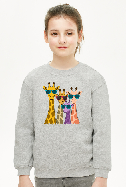 żyrafa, zwierzęta, okulary, śmieszne, kolorowe, rodzina, stylowe, wesołe, kreskówkowe, dziecięce, dla dzieci , bluza dziecięca , prezent