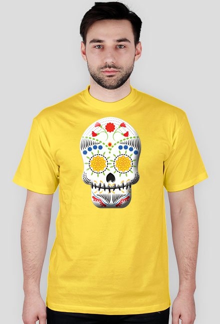 Model ma na sobie koszulkę w rozmiarze M. Maksymalne wymiary nadruku to 30cm (szerokość)