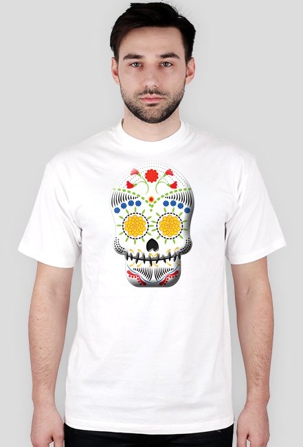 Model ma na sobie koszulkę w rozmiarze M. Maksymalne wymiary nadruku to 30cm (szerokość)