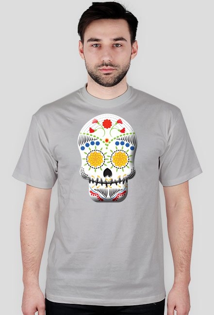 Model ma na sobie koszulkę w rozmiarze M. Maksymalne wymiary nadruku to 30cm (szerokość)