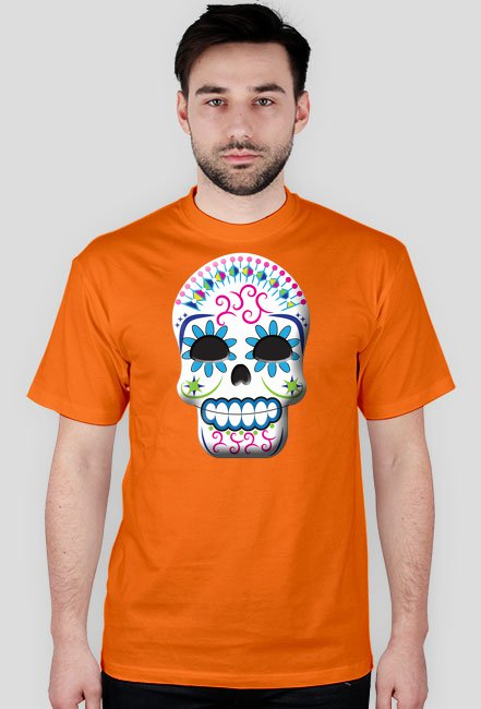 Model ma na sobie koszulkę w rozmiarze M. Maksymalne wymiary nadruku to 30cm (szerokość)