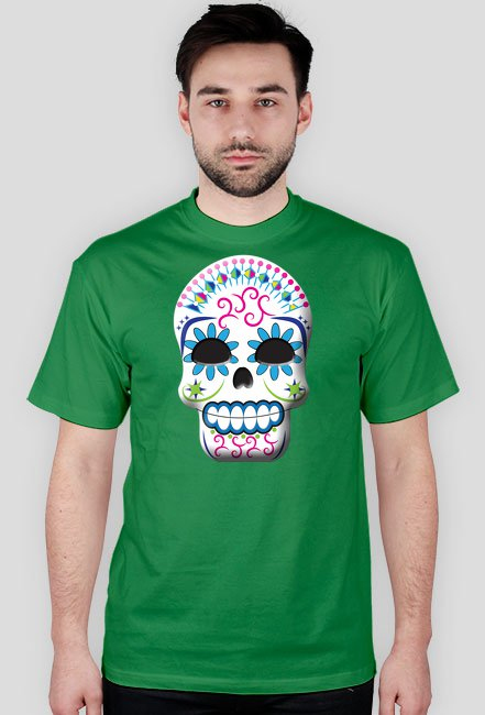 Model ma na sobie koszulkę w rozmiarze M. Maksymalne wymiary nadruku to 30cm (szerokość)