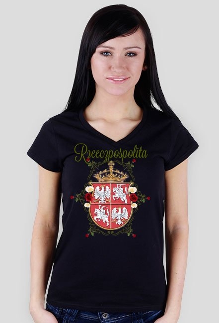 Koszula damska Rzeczpospolita - róże WKL SKU: koszulka-v-neck-damska_lx9iw9yx_2659205