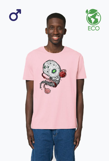 Męska koszulka z linii Eco Aware. Posiada wszywane rękawy, ściągacz na kołnierzyku oraz taśmę wzmacniającą na karku. Rękawy i dół z wąskim podwójnym ściegiem. Materiał: single jersey: 100% organiczna bawełna czesana ring spun. Gramatura 150 g/m². Posiada certyfikaty: GOTS (Global Organic Textile Standard), GRS, OCS, OEKO-TEX Standard 100, Fair Wear.