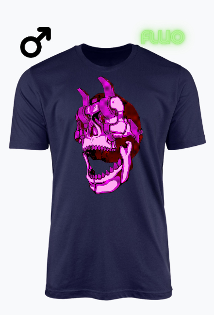 Koszulka z nadrukiem fluorescencyjnym. Pod wpływem ekspozycji na światło słoneczne lub sztuczne – nadruk świeci w ciemności! Koszulka z nadrukiem fluo to świetny pomysł na oryginalne przebranie na Halloween.