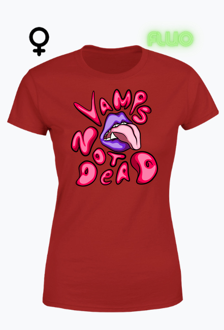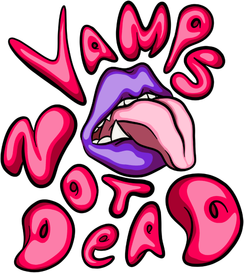 Motyw przedstawia wyraziste usta z wampirzymi kłami oraz napis „Vamps Not Dead”. Grafika łączy w sobie zadziorność, humor i nutę gotyckiego klimatu, tworząc oryginalny wzór na odzież i akcesoria.