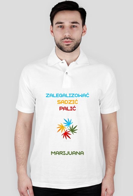 Koszulka polo męska biała - 4 kolory cannabis : zalegalizować sadzić palić marijuana SKU: koszulka-polo-m-ska_f7s61tr1_1600479