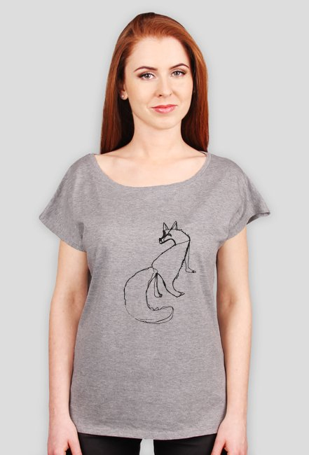 Damska koszulka z nadrukiem - lisek . Autorska grafika. Wzór chroniony prawnie.Wszelkie prawa zastrzeżone.