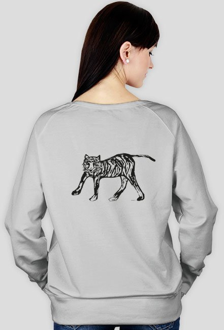 Damska bluza z nadrukiem na plecach grafiki z tygrysem. Autorski projekt. Wzór chroniony prawnie.Wszelkie prawa zastrzeżone