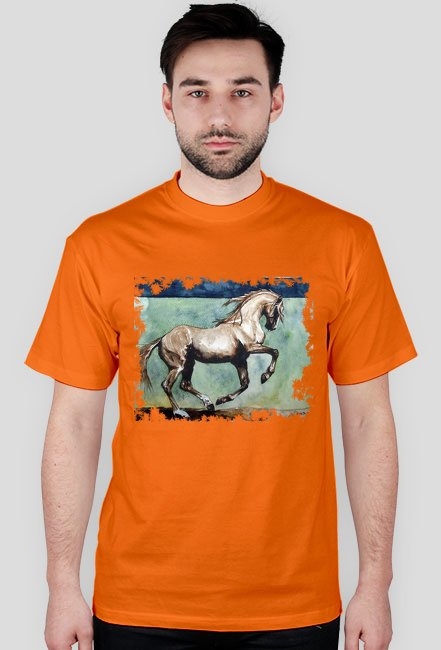 Model ma na sobie koszulkę w rozmiarze M. Maksymalne wymiary nadruku to 30cm (szerokość)