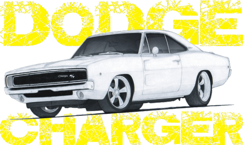 Koszulka z kultowym Dodgem Chargerem RT. Nadruk na koszulkach czy innych produktach z wykluczeniem koszulki żółtej