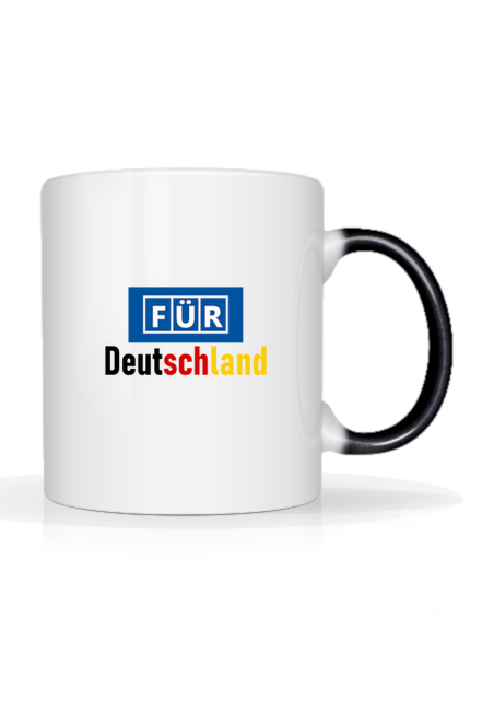 Kubek w humorystyczny sposób nawiązujący do bardzo często prezentowanego widzom TVP zwrotu wypowiedzianego przez Donalda Tuska - "Für Deutschland".