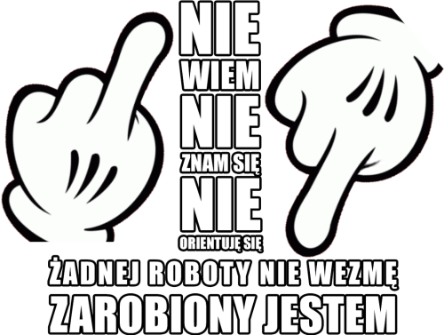NIE wiem, NIE znam się, NIE orientuję się żadnej roboty nie wezmę, zarobiony jestem! SKU: koszulka-K01_gw8qc3sk_4523418